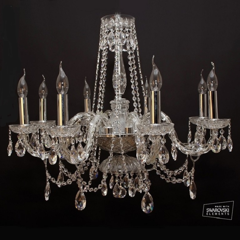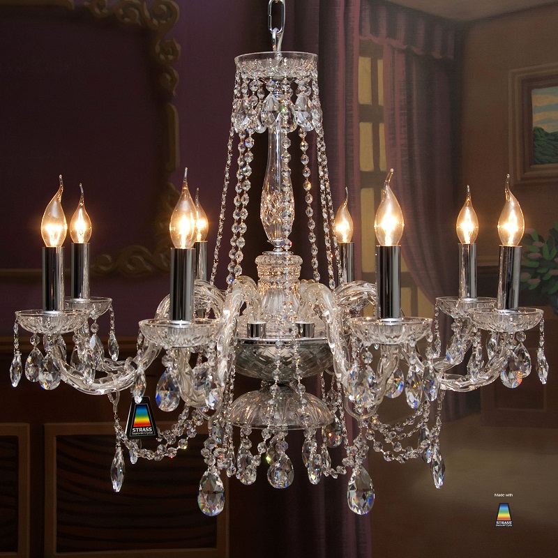 Lámpara brazos de cristal 8/L, acabado en cromo con almendros transparentes MADE WITH SWAROVSKI ELEMENTS