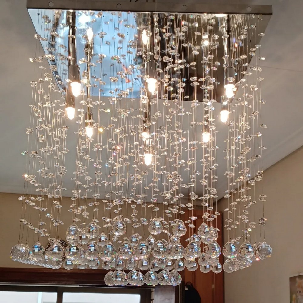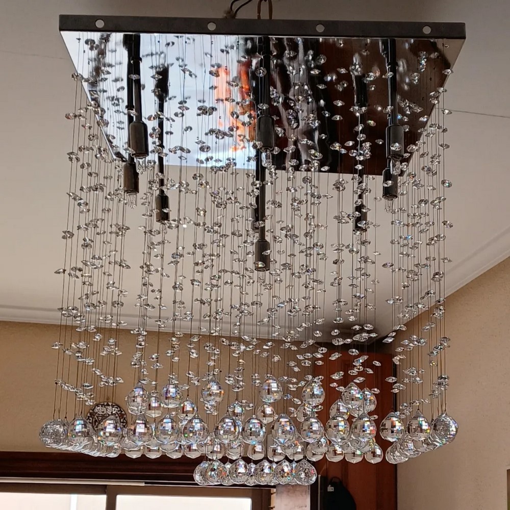 Original plafón de grandes dimensiones con lluvia de cristales y acabado con bolas de cristal de calidad.