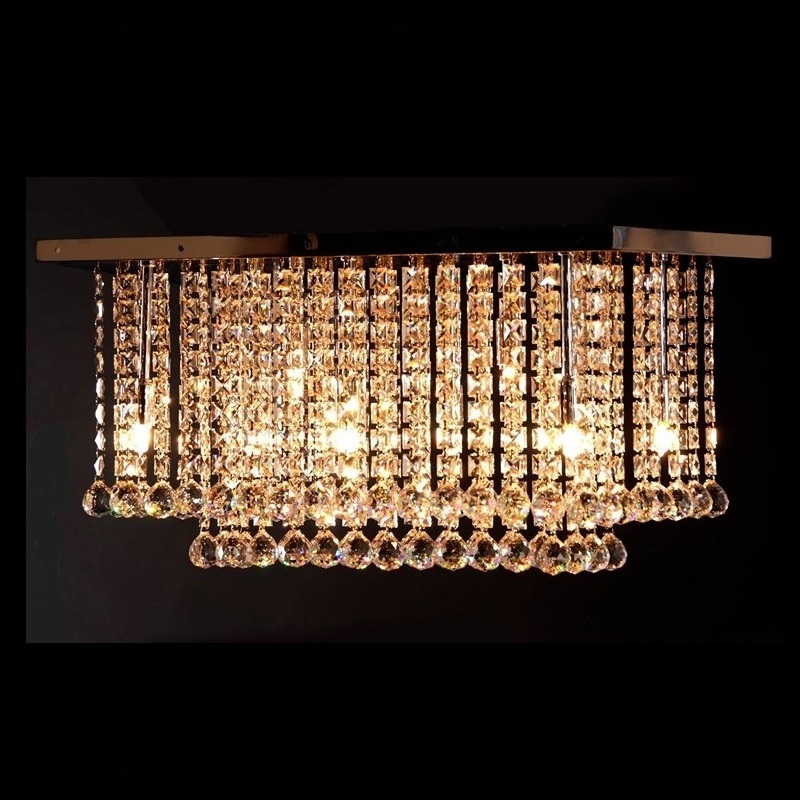 Plafón placa rectangular,acabado en cromo, con tiras de cristal ASFOUR transparente cuadradillo + bola