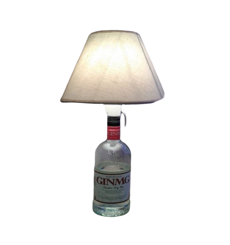 Sobremesa lámpara botella ginebra, y AHORA con la botella taladrada y cable por su interior. Lámpara sobremesa ideal para nostálgicos.