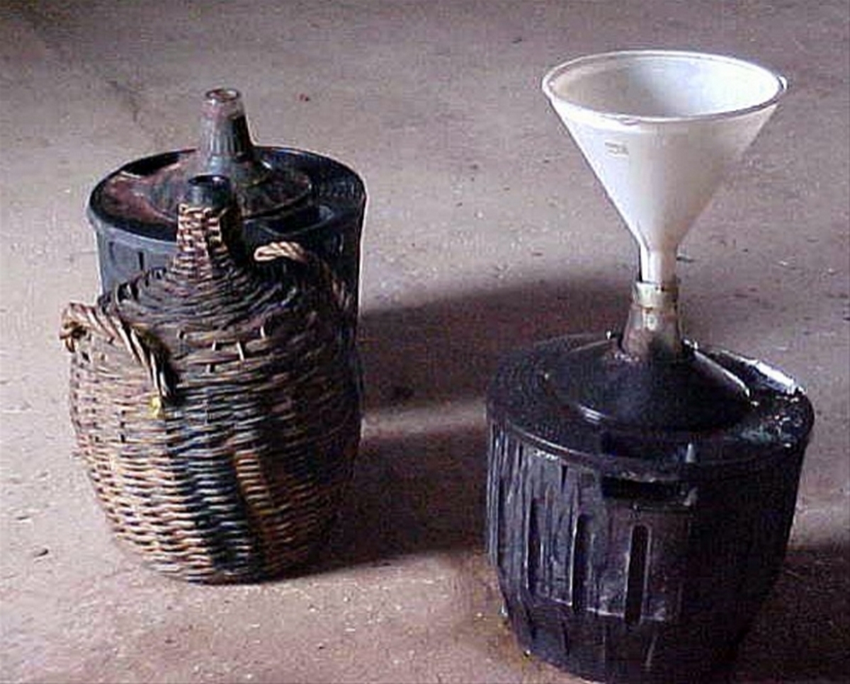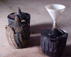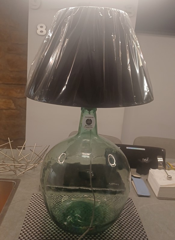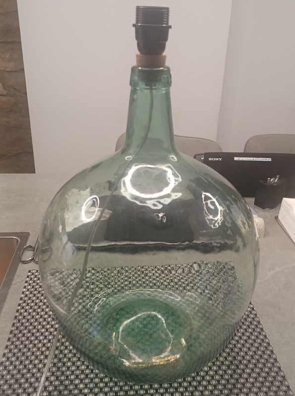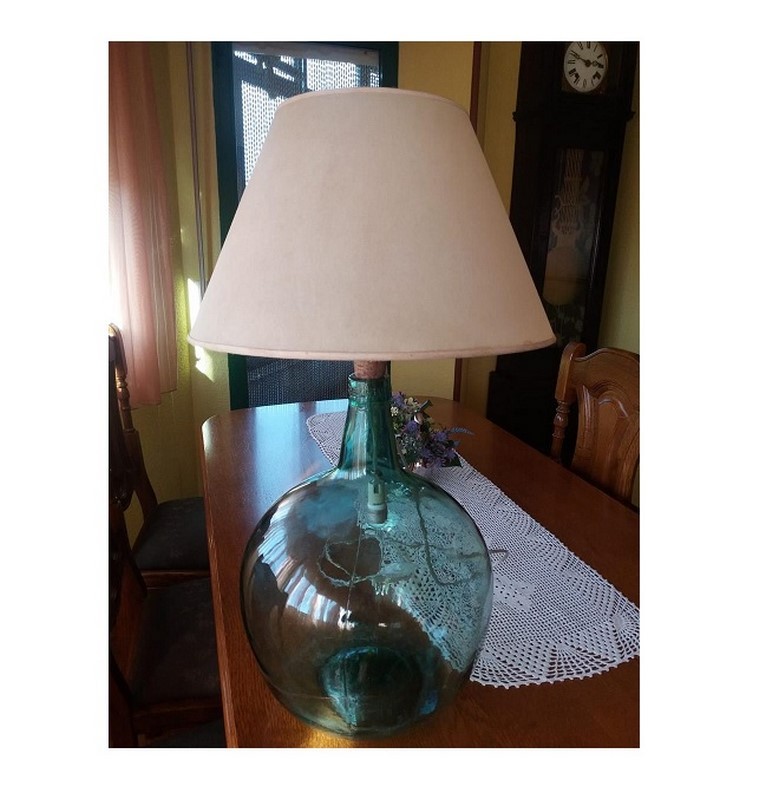 Sobremesa de cristal de garrafón grande de vino con pantalla de tela negra de 40 cm para crear ésta preciosa lámpara ideal para un rincón amplio.