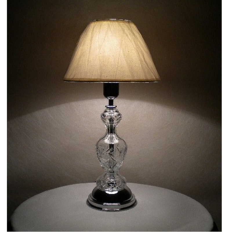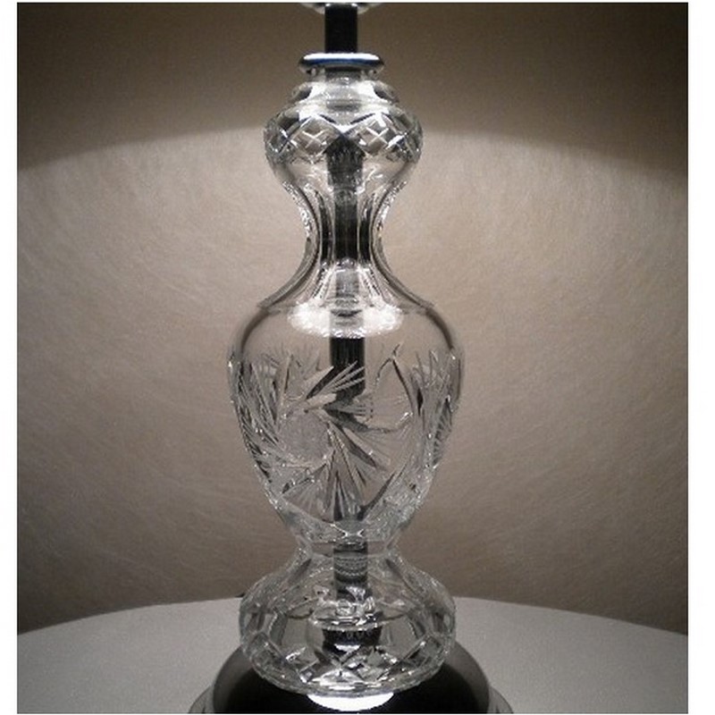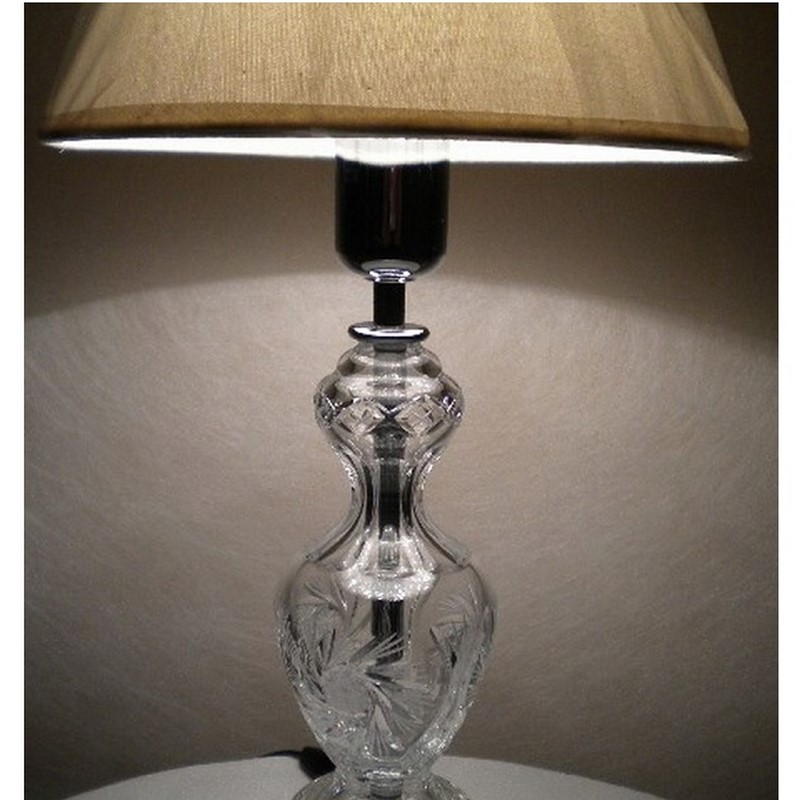 Sobremesa de cristal de bohemia tallado, acabado en cromo y con pantalla.