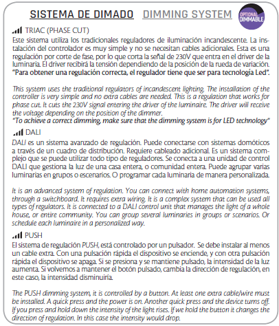 | Encendido | Regulación Casambi, Regulacion Dali/push |